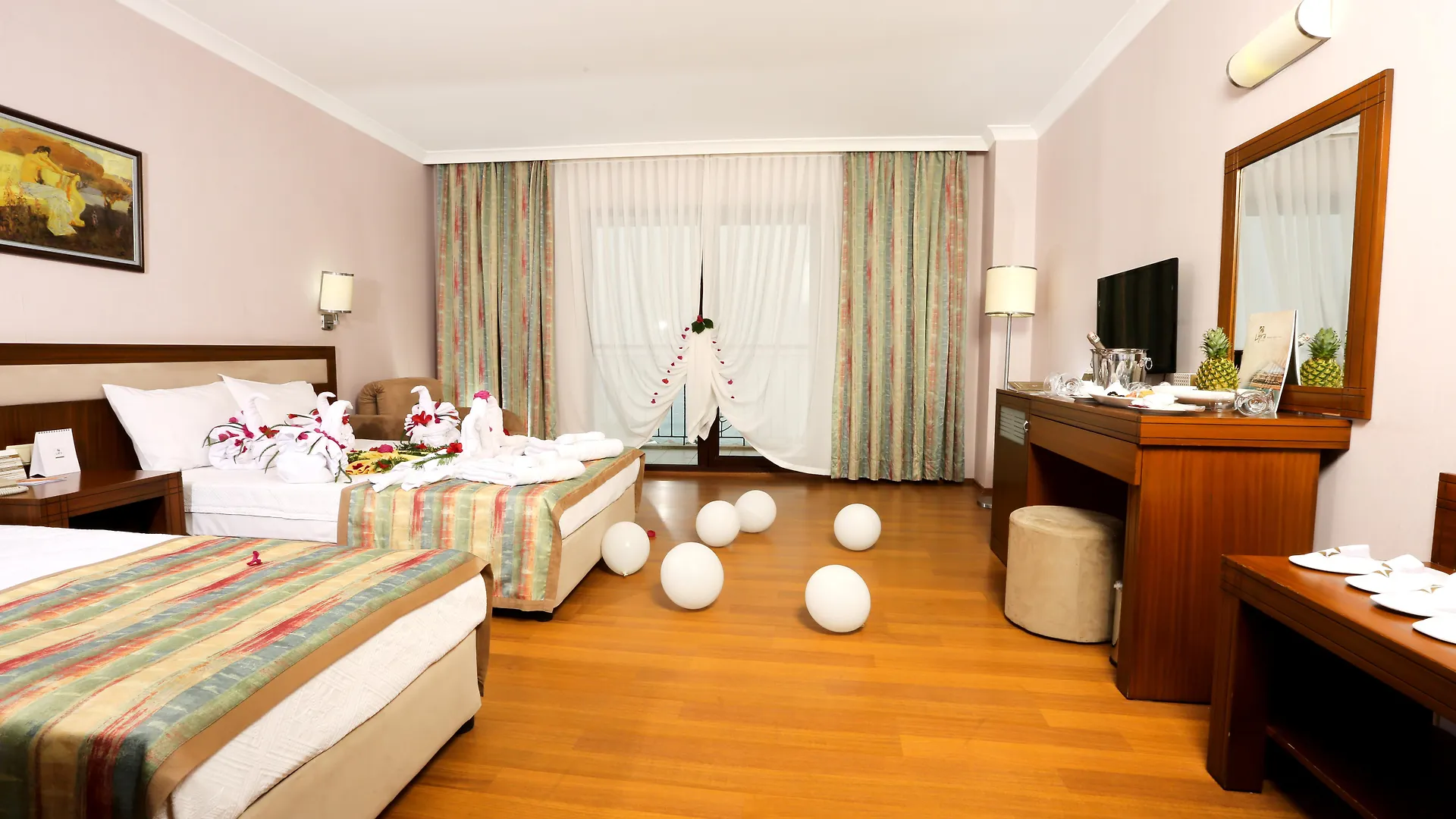 Selectum Family Comfort Side enjoys a privileged position on the first coastline, boasting its own private pier and a mixed sand-pebble beach stretching 250 meters. Located 80 km from Antalya Airport and 10 km from Manavgat, the resort is easily accessible by taxi or minibus.
